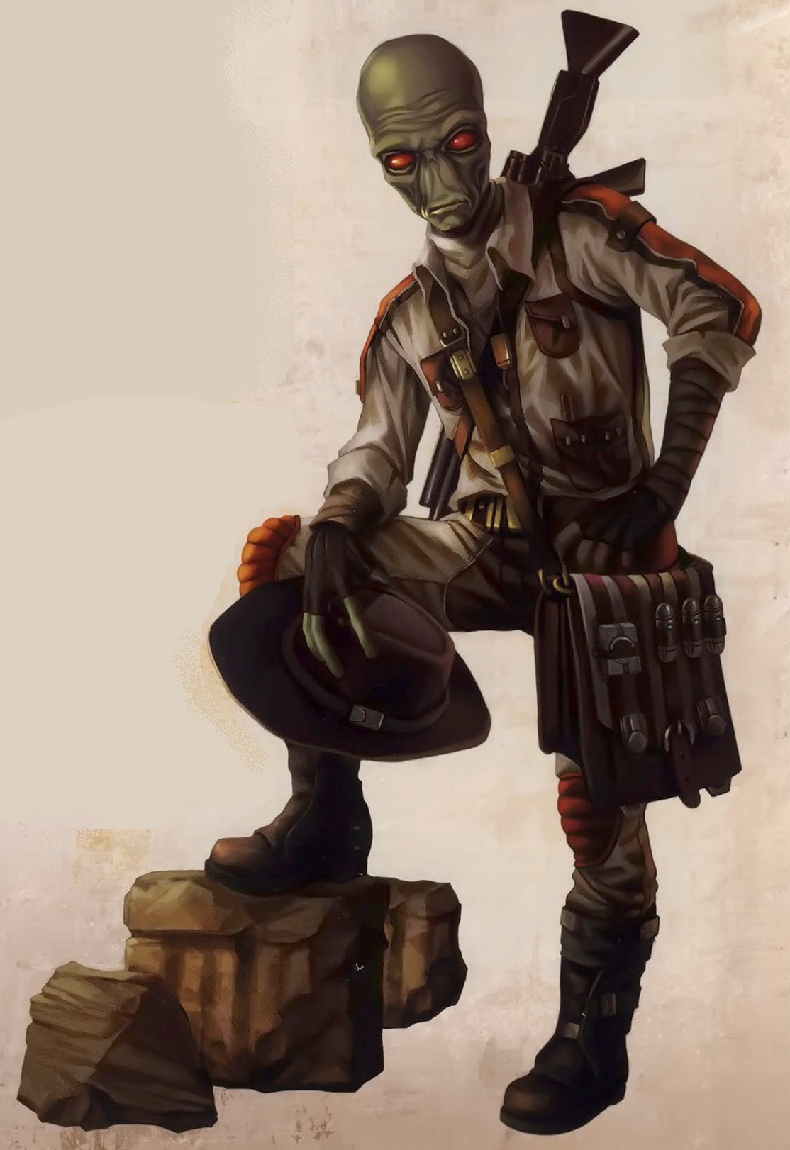 After scanning through Edge of the Empire, one thing has become very clear to me – their artists have a fixation with flat-brimmed, flat-crowned hats! In addition to the Duro archeologist above, several other human females (possibly archeologists as well) and a Rodian ‘fringer’ Explorer wear the same style. If one factors in the more prominent characters Cad Bane and Nico Okarr, it seems that this type of hat has become shorthand in the modern era for ‘fringe character’!: