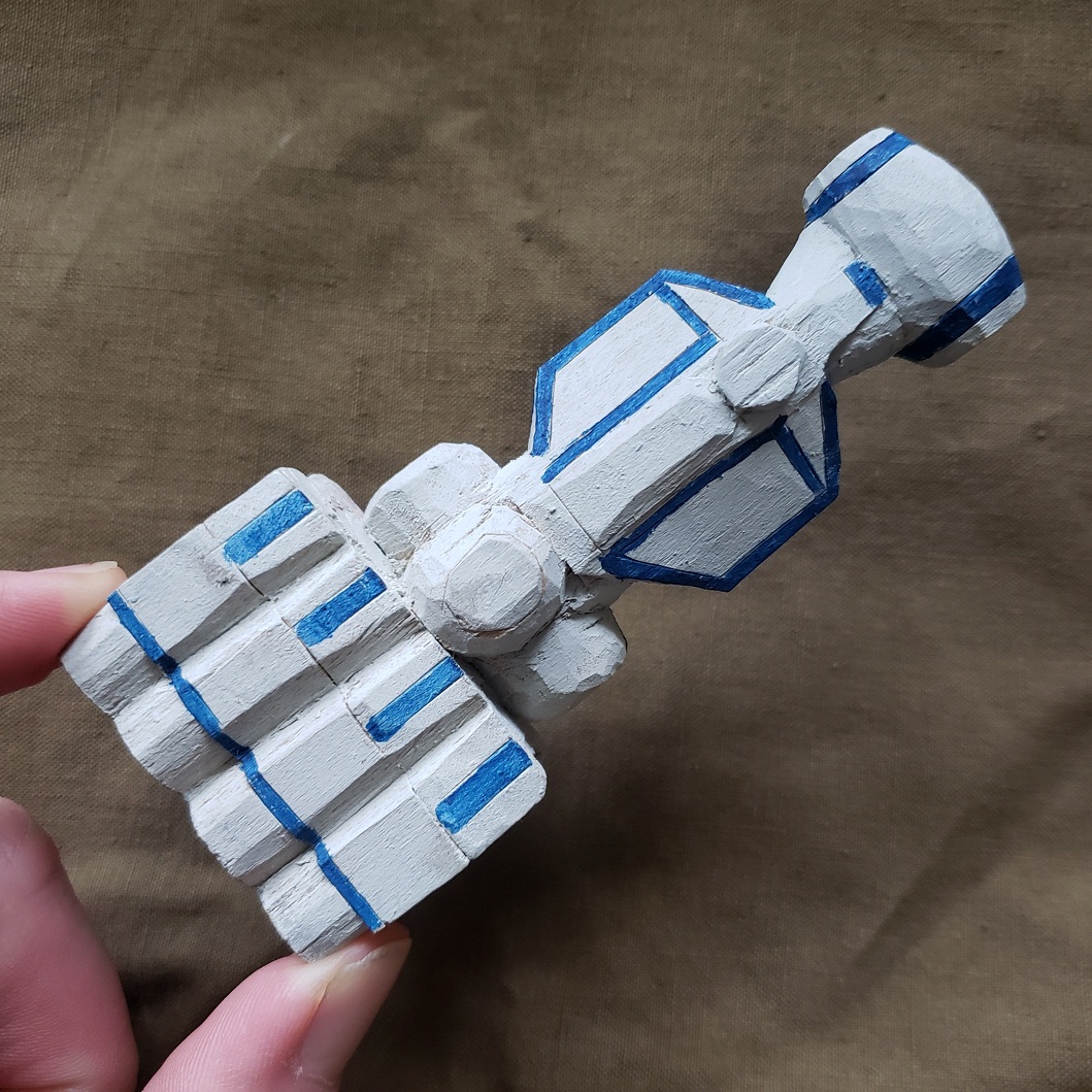 It’s been quite a while since I’ve had any new Star Warsy whittlings to show off! I had planned to do some whittling along the Appalachian Trail last year (and found the perfect little neck-knife in a hiker box)…but unfortunately hiking 15-20 miles a day doesn’t leave time for much else besides eating and sleeping. I actually carved up this little consular ship last midwinter, and forgot I had been sitting on it for a whole year! Unlike the Republic cruiser I last whittled, this one was made out of poplar, so I was able to include a much higher level of detail: