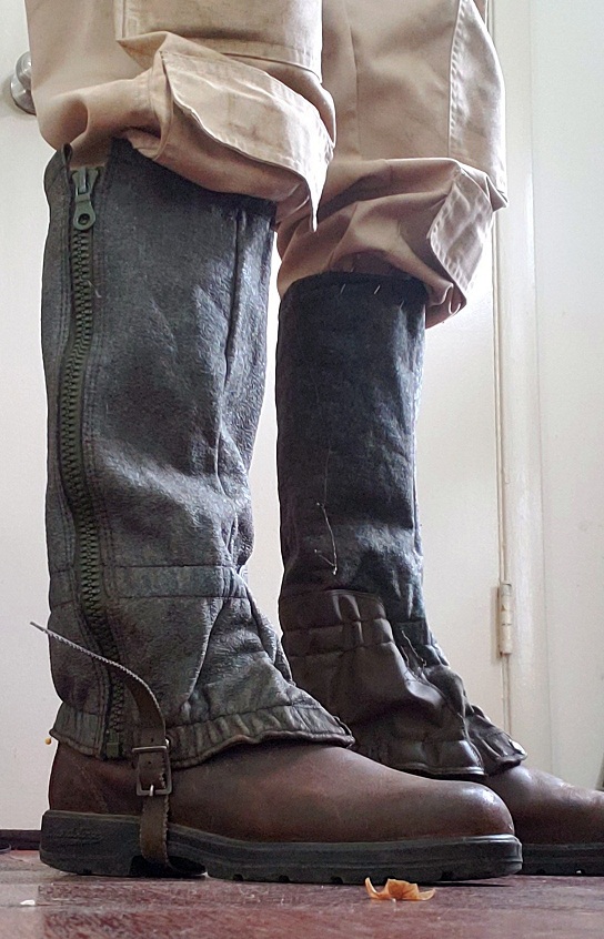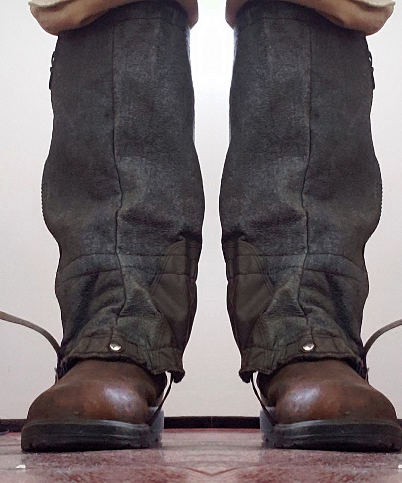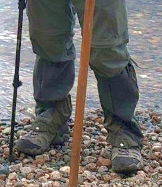 The second piece of repurposed milsurp gear I wanted to de-fastener-ize was my pair of Swiss snow gaiters, seen here being worn on my AT thruhike last year in Maine’s ‘Hundred Mile Wilderness’: