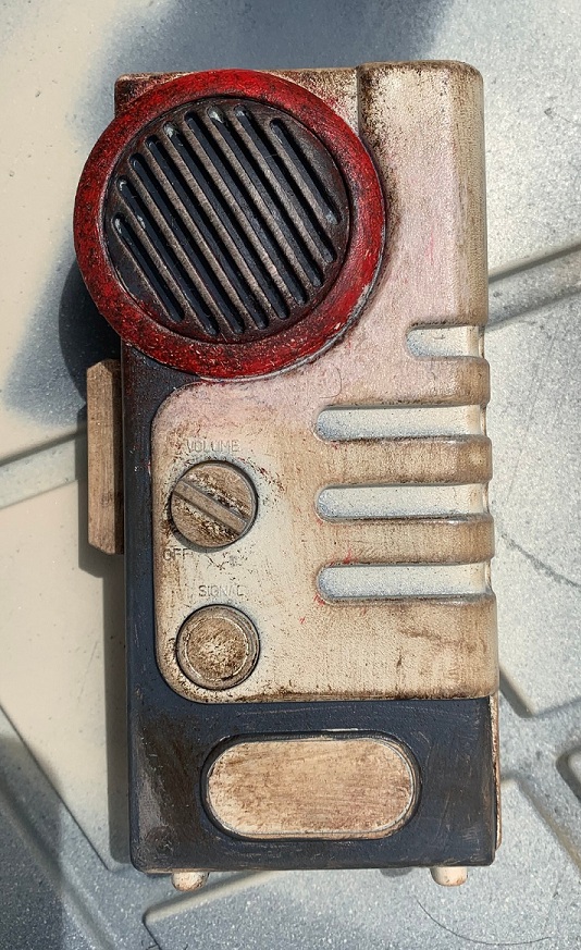 GP: The base layer jumpsuit is poly/cotton blend. The vest went through two iterations and started its life as a thrifted leather motorcycle jacket. Initially I cut the sleeves off and it was a long vest, but I’ve recently cropped it at the waist to better clear my belt line and make carrying tools easier. I’ve purchased an aviator-style fur-lined “ear flap” cap, and paired it with a set of goggles that I weathered with a rasp and oil paints. Due to weather concerns I also have a patrol cap for hotter days. All of the belts are thrifted/secondhand, and the small utility bag is made from a purse that I converted to a drop leg bag.