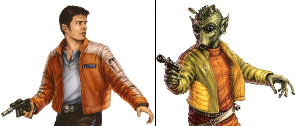 Welcome back to another installment of the Galactic Style Guide, the monthly series where we break down the ‘Star Wars aesthetic’ to help you create a more authentic ‘outer persona’! As I promised last month, this entry is devoted to examples of in-universe jackets drawn from the various sources of the Expanded Universe and ancillary materials. Let’s get started with the two jacket-wearers seen in the New Essential Guide to Alien Species: