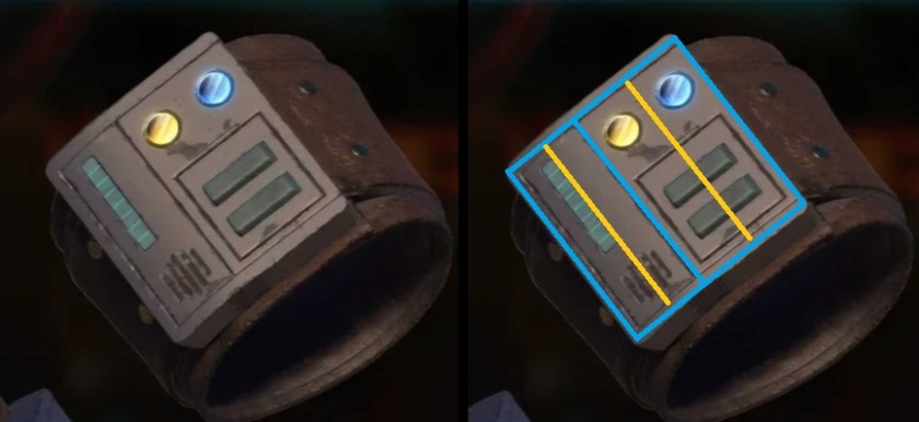 Although notably absent in the original film (and the Prequels), the pieces of wearable technology discussed in this early Style Guide entry have become nearly ubiquitous in the post-Disney era and among the casual costuming/Batuu-bounding communities. These devices’ purposes have been inconsistently identified, but most sources suggest they are either communication devices or personal transponders—think a wearable ‘Personal Locator Beacon’. (These differ from the plaques worn by Imperial and Rebel officers throughout the Original Trilogy, which clearly served to denote the wearer’s rank, and about which this article is not concerned!)
