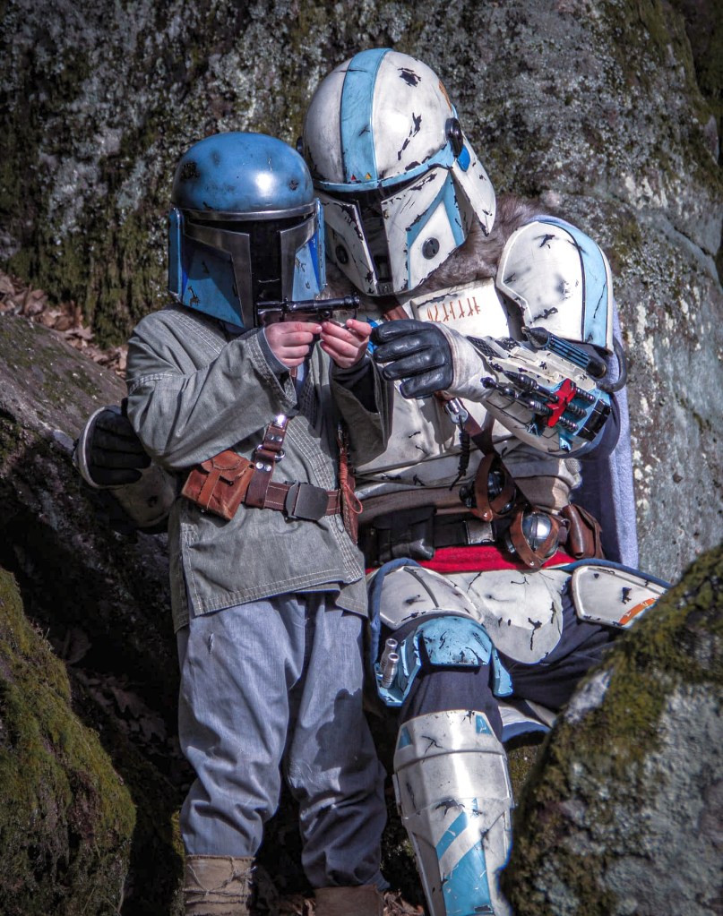 Welcome back to our monthly spotlight series, where we discuss Star Wars costumers who have ‘gone the distance’ and put in the effort to create solid, in-universe outfits or personas. This month’s entry is actually a bit of a carry-over from last month, because while building his own Mandalorian ‘Kryos’ kit, T.H. also created a simple but highly-effective outfit for his own youngling at home: