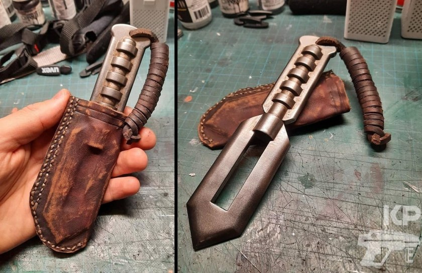 Every reenacting kit is better with accessories, and while a youngling this small doesn’t have much use for full-sized blasters (yet) or a bandoleer of large pouches, when an outfit doesn’t have pockets, the belt kit fills the role. A child’s ‘EDC’ needs are much less than an adult’s, so a small pouch is enough to hold a snack and a few credits, while a culturally-Mandalorian kal dagger is a good stand-in for the boy’s traditional pocket knife. While the blade itself may be 3d printed resin, the use of thoughtful weathering, hand stitching, and actual leather contributes to the overall feeling of authenticity.