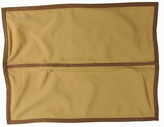It has applied knit wool strips at the edges and shoulder line, and looks like it’s lined in a darker material? Supposedly, the trim material was also used for Luke and Han’s medals at the Yavin ceremony!