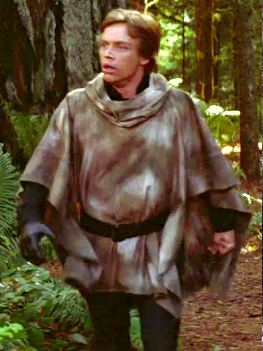 The first poncho we see in the Original Trilogy is worn by Luke as part of his farmboy attire: