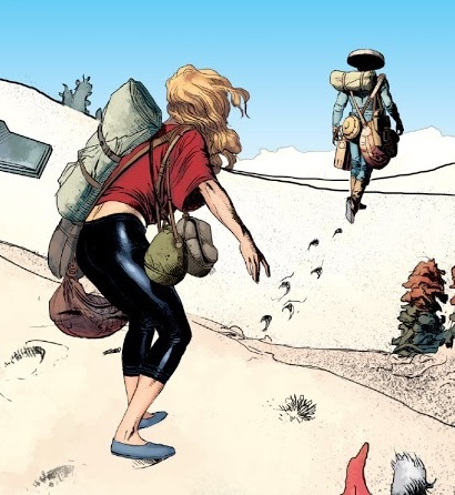 I absolutely cannot stand Ember’s outfits in this arc (they’re JUST Earth clothes), but it does a really good job of feeling very grounded in its depiction of non-vehicular travel – this is what it would look like to crash-land and have to set out on foot.
