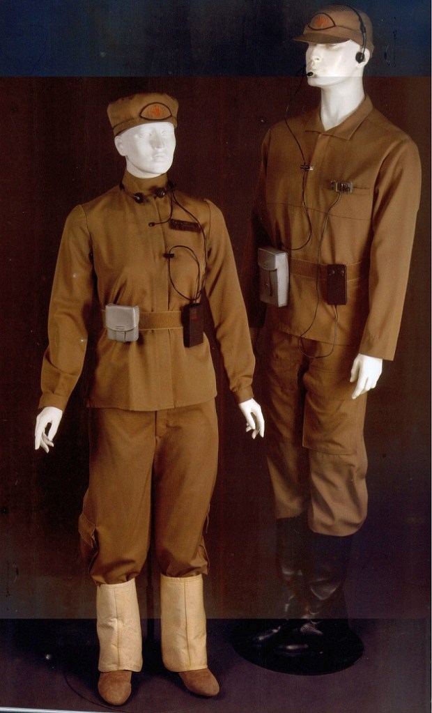 Looking to the Prequels next, we have several more examples. On Naboo, we briefly see the Royal hangar crew comes in two flavors: mustard yellow and rusty red-brown; they all wear unique double-breasted coverall suits with wide integral belt loops, a belt, boots, and engineer helmets: