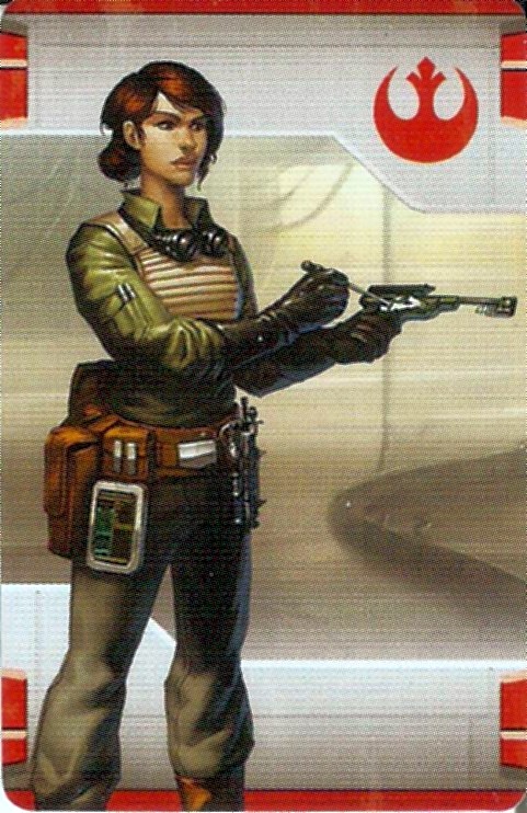 I really like this next one! Saska Teft comes from FFG’s Imperial Assault II game, but I’m including her here because she’s identified as a ‘battle technician’, and in this case, that comes across very clearly in her character design. We can tell she’s something technician-related because she’s wearing what appears to be a one-piece green-gray coverall, welding goggles, leather gloves, and a fully-loaded toolkit-belt. But the presence of a Rebel pilot-style flak vest shows us that there is a slight combat orientation! The fact that it’s a textile-based piece of armor (as opposed to more Imperial-style rigid plastoid) helps underline her allegiances. Overall her look almost says ‘pilot’, but the lack of helmet, life-support chestbox, or ejection webbing keeps her solidly in the ‘battle technician’ arena where she belongs.