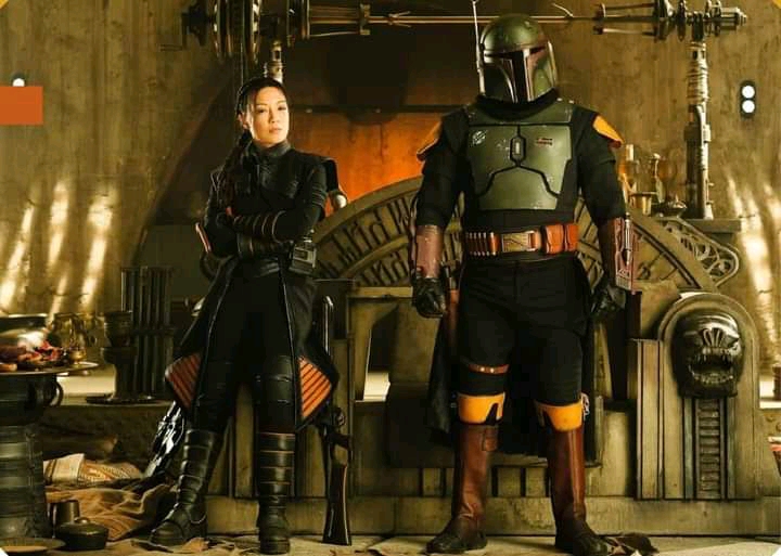 Considering the prominence that costume-color-as-indicator-of-moral-alignment plays in the OT (Luke starts off as a neophyte wearing white, gets murky in the middle act, and wears black to symbolize the threat of falling to the dark in the third, only for the white to shine through once he passes his test), and that this is reflected in other characters we’ve seen defect or otherwise turn towards the good*, it’s unfortunate that they’ve chosen to dress their ‘reformed’ Boba in all-black softgoods. This gripe also goes for Fett’s new right-hand woman ‘Fennec Shand’ too: if she’s going to go from an underworld assassin to a good guy now, shouldn’t her outfit also reflect this and go up a couple shades? You’d think so, but this is D+ Streaming World, so she’s stuck wearing the same weird black-and-orange getup.