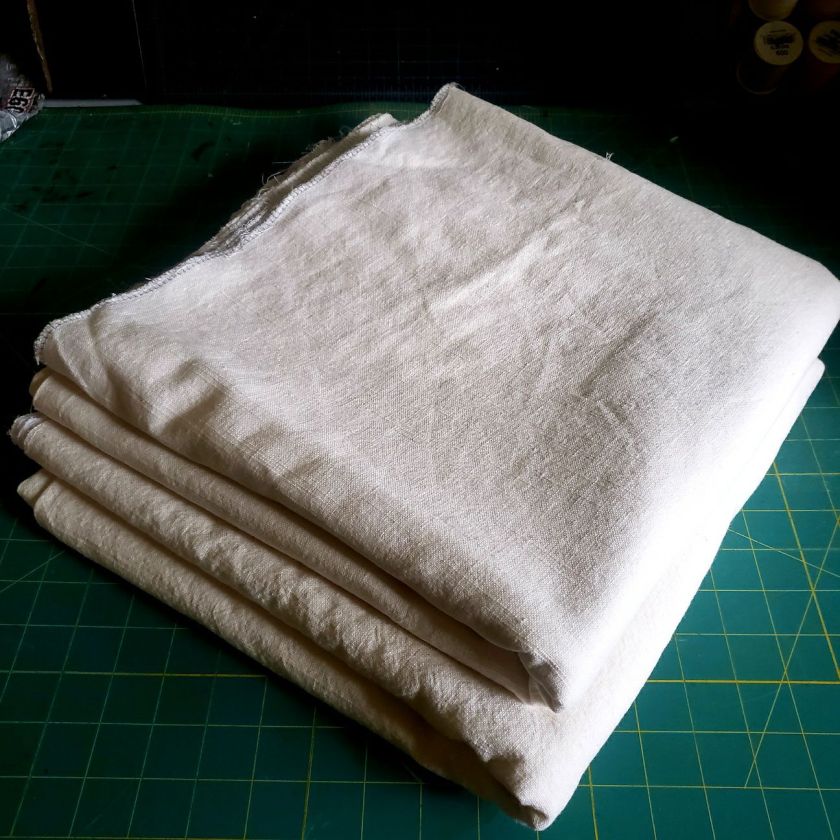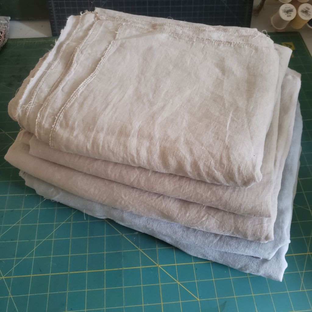 These three king-size 100% linen sheets and a duvet cover yielded a whopping TWELVE yards of garment-weight material in Swarzy muted colors. Price: $10 for all.