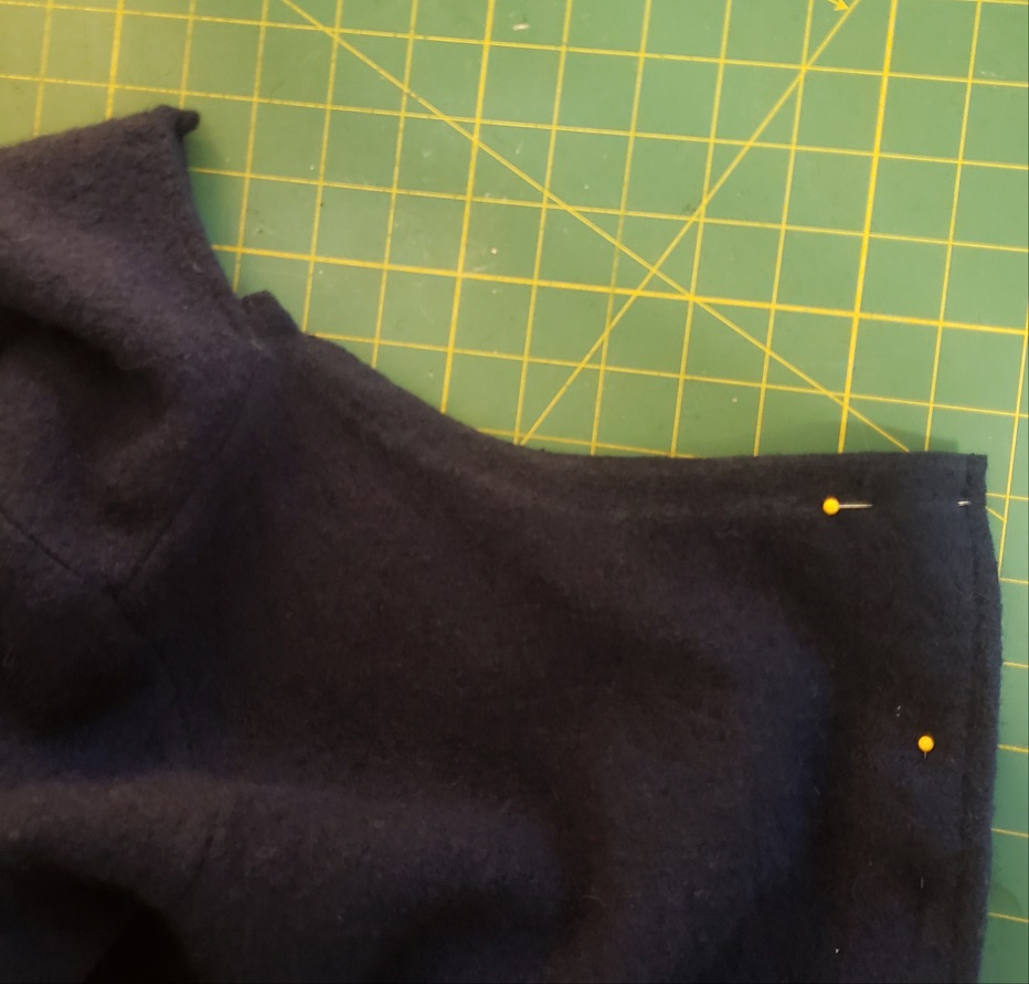 The material itself is great – it’s actually a knit, but since it’s 100% wool there’s enough felting going on that it both looks woven and doesn’t unravel when cut! Color-wise, it’s a bit brighter than simply Navy blue and a bit lighter than Royal blue, which is fine for GFFA uses. Obviously I’d prefer something a little lighter or less saturated, but it otherwise checked most of my boxes… except one.