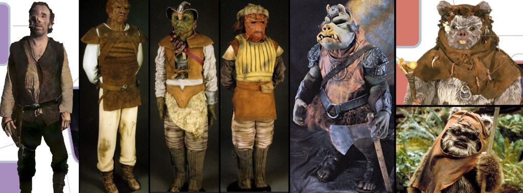 Finally, while TONS of characters (okay actually MOST of them) wear leather accessories like belts, holsters, and pouches, its use for garments is comparatively rare, but as we can see here is usually worn by rough-around-the-edges types of characters – whether that be members of the galactic underworld or wild ‘noble savage’ tribes!