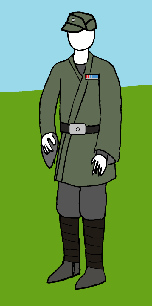 The Imperial style has never been shy about its visual inspiration: clean, efficient fascist styles of the early 20th century: think crisp double-breasted jackets, leather riding boots, and jodhpur-cut pants. The styles of the galactic peasantry, on the other hand, are more varied but tend to come from remixed historical designs, often from non-Western cultures: long homespun robes of Middle Eastern/North African desert nomads, wrap-front coats and legwraps of northern Europe, or light, breezy tunics and trousers of south Asia. These typically are made from rustic fabrics with lots of texture and character; the Imps use less-textured but still high-quality fine wools. Even if paired with the trappings of space-fash like rank plaques and belt/hat discs, trying to combine the two looks just doesn’t quite work.