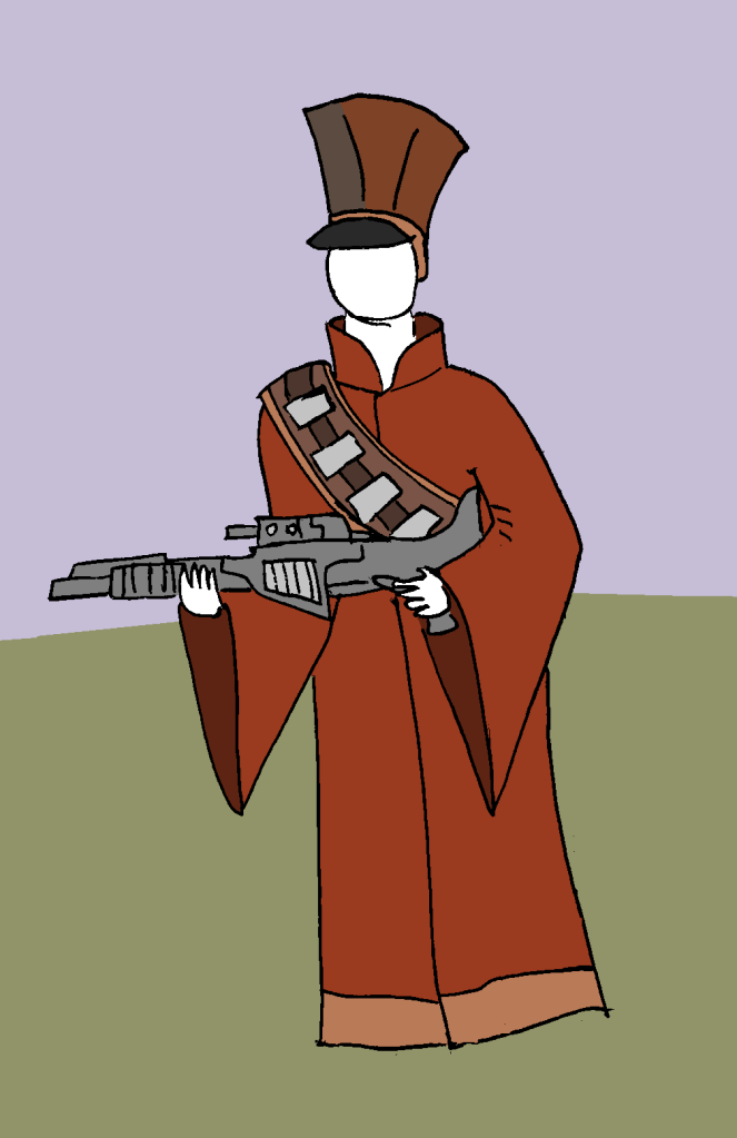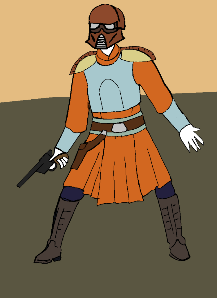 By contrast, the spacer/’smuggler’/starship captain look is probably the most similar to the modern Western style (tailored, ~hip-length tops worn with trousers); the main inspiration comes from the cowboy of Western cinema (think quickdraw holsters, vests, riding pants and boots). This is at odds with the Force-user archetype, which draws on Orientalist ‘exotic’ style longer tunics, paired with accessories that suggest religious vestments (tabards, wide sashes, etc); darksiders may add some hard armor that lets us know they’re ready for a fight. However, a good smuggler’s goal is to avoid attracting attention, and so they should do their best to dress space-casual and not project a ‘combat-ready’ stance.