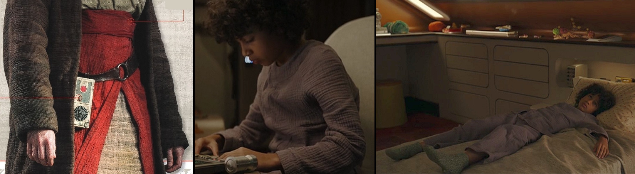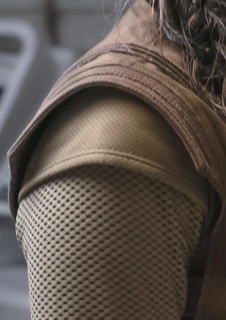 As we creep closer to familiar textures, one somewhat ‘Earth-y’ (and much less durable!) textured material seen onscreen is ‘Bubble Gauze‘, which as far as I can tell has only shown up in modern (post-Disney) titles. I don’t know when it was invented (out of universe – drop a comment if you have an idea!), but its first appearance onscreen was as the red sash/skirt-thing worn by ‘Lyra Erso’ in Rogue One and more recently used for the pajamas worn by Wim in Skeleton Crew. Neither of these quite projects ‘tough and active’, so if you want to portray a more adventurous character along those lines, it may be best to opt for a more hard-wearing fabric better suited to the rough and tumble life – canvas, leather, etc. – or at the very least, line it with something else to give it weight and the illusion of ruggedness!