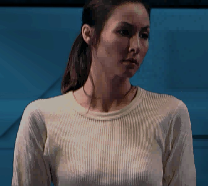 Though still rare in such a majority-woven setting, when the occasional stretch or knit fabric does show up in the GFFA, they stick out a bit less when they’re more textured than the above examples: take Barriss Offee (who opts for a dark horizontal-rib top, instead of the trad Jedi’s earthtone, eastern-style wrap tunic), or the sublimely mid-90s vertical-rib (not waffle!) top worn by Jan Ors in Dark Forces 2 (a piece which would be something of a ‘holy grail’ thrift shop find for me):