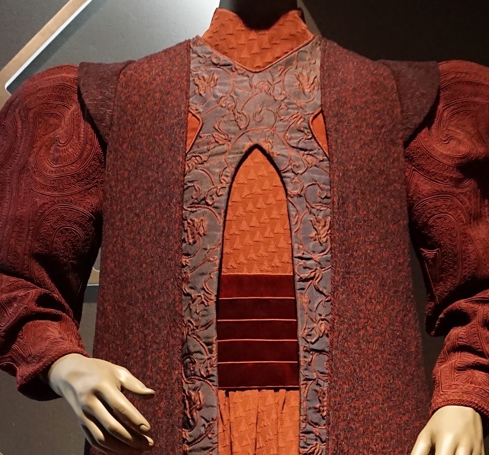 However, even at a distance, our eyes will still subconsciously pick up on a good texture to tell our brains that the material is substantial. Case in point: Padme’s refugee disguise sleeves – up close, they look more like, I dunno, pebbled lizard leather?!, while from a distance they’re simply ‘interesting clothing with good drape’: