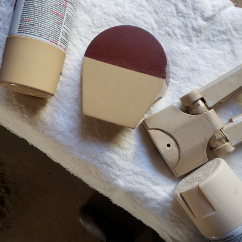 After reading about some discontinued ‘Sahara tan’ from some expensive brand, I was starting to despair that a readily-available correct color would prove elusive. Thankfully, someone on the B1 Builders facebook group said that they had found a new Rustoleum color (‘French Beige’) that seemed like a perfect fit. I ran down to the hardware store and sure enough, judging by the cap it looked just about right – and best of all, it came in satin, not matte or gloss!