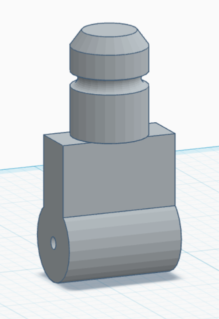 OH YEAH – paint colors aside, the other big bottleneck came from the hardware itself! The pin that I made (when converting the ball-in-socket wrist joint to a screen-accurate one) back in ’20 started coming apart (a result of not enough longitudinal strength and a Frankenstein combination of materials, go figure). This meant it was finally time to dip a toe into an arena I’ve mostly kept at arms’ length – 3D Modeling! I figured a basic shape like this would be fairly easily to replicate in TinkerCAD, so I made it my New Years’ Resolution to sit down with my calipers and some tutorials to see what I could come up with: