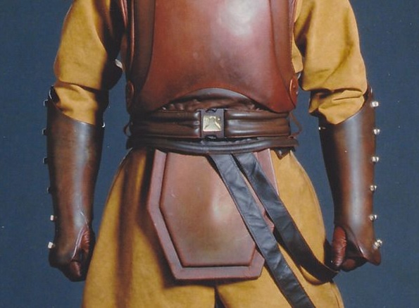Even Naboo’s military is not immune to visible fasteners – the Security Guards’ vambraces and greaves both feature protruding, twist-locking studs that act as a sort of ‘hardware button’ (the best pictures can seen at KayDee’s gallery), and as seen in this Episode 1 featurette, buttons somehow featured in what looks like the leather parts of the Security Officers’ outfits as well!