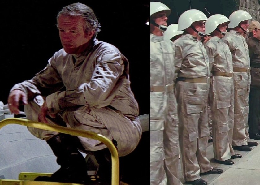 This project in particular is also the result of a curious local quirk: the area of town where I live has a very strong culture of ‘curb crawling’, in that neighbors frequently put unwanted items on their curbs free for the taking! One day last summer I was biking around town when I came upon one of these treasure caches and pulled over to take a look. Among the knick-knacks and a cool bell beaker-shaped glass vase was a plain stainless water bottle (of the sort I had spotted onscreen in Episode II several years back), so I took it home and cleaned it up. The size was actually smaller than the onscreen one – holding only a pint or so – but I thought it might be a useful bit of hydration kit. Since I already have some great in-universe canteens, and this bottle was too small to be a proper canteen, I thought it might be useful for holding some other fluid (electrolyte concentrate? Corellian whisky?), and began brainstorming how I might carry it in a pack or on my person. One way the Star Wars galaxy has always felt like a real setting is the use of repeated visual elements which give a sense of cultural continuity and cohesion. Among my favorite of these is the ubiquitous cylinder carried at the rear of the wearer’s belt: